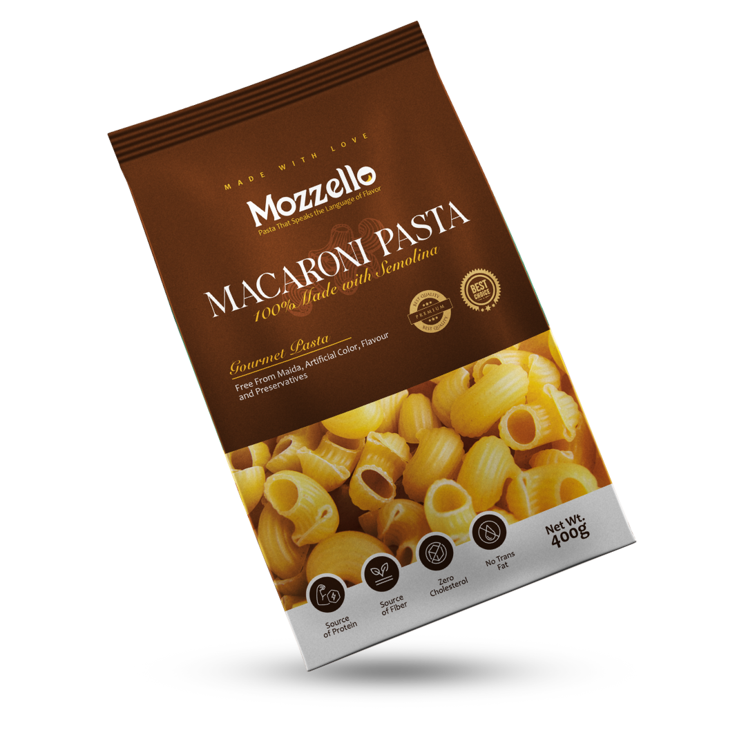 Made with 100% semolina and crafted to perfection, Mozzello Macaroni Pasta brings the authentic Italian experience to your plate. With zero maida, no artificial additives, and rich in fiber, it’s a healthy choice that doesn’t compromise on taste. Perfect for baked dishes, creamy sauces, or quick meals—enjoy a wholesome twist on your favorite pasta recipes.